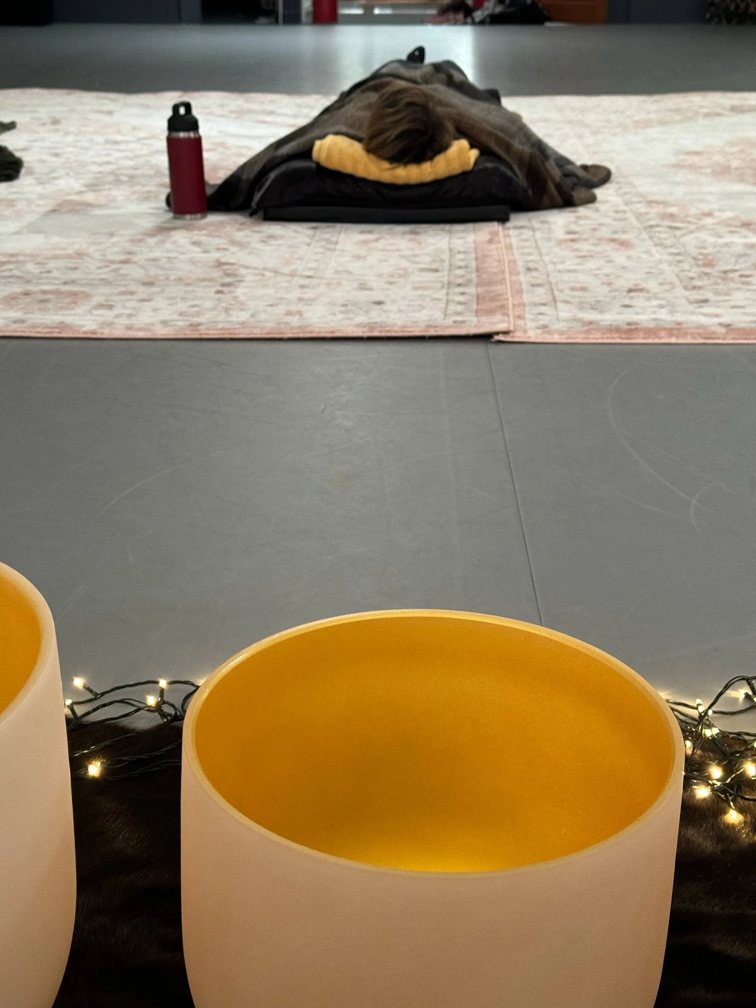 She continues to deepen her studies in 2025 through the Foundations of Sound Healing™ certification program with renowned teacher Zacciah Blackburn of Sunreed Instruments—an internationally respected voice and expert featured on Gaia for his pioneering work in the field of sound, energy, and consciousness. It was with Sunreed’s help that led to the creation of Kaz’s signature 10-bowl set: nine golden frosted crystal quartz bowls tuned in 432Hz, spanning from the Earth Star Chakra to the Soul Star Chakra, and a special 10th bowl tuned in 440Hz, purposefully selected to aid in creation of the theta frequency (you may have heard of the theta brainwave) that can aid in rest and inner journeying.